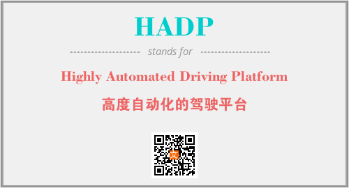 英文缩略词“HADP”经常作为“Highly Automated Driving Platform”的英文缩写来使用,中文表示:“高度自动化的驾驶平台”。本文将详细介绍英文缩写词HADP所代表英文单词,其对应的中文拼音、详细解释以及在英语中的流行度。此外,还有关于缩略词HADP的分类、应用领域及相关应用示例等。
