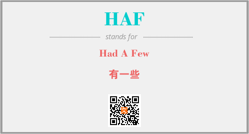 以上为Had A Few英文缩略词HAF的中文解释,以及该英文缩写在英语的流行度、分类和应用领域方面的信息。