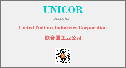 英文缩略词“UNICOR”经常作为“United Nations Industries Corporation”的英文缩写来使用,中文表示:“联合国工业公司”。本文将详细介绍英文缩写词UNICOR所代表英文单词,其对应的中文拼音、详细解释以及在英语中的流行度。此外,还有关于缩略词UNICOR的分类、应用领域及相关应用示例等。
