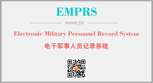 以上为Electronic Military Personnel Record System英文缩略词EMPRS的中文解释,以及该英文缩写在英语的流行度、分类和应用领域方面的信息。