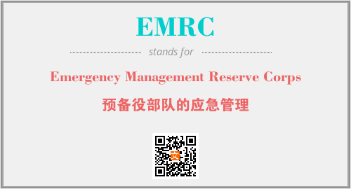 上述内容是“Emergency Management Reserve Corps”作为“EMRC”的缩写,解释为“预备役部队的应急管理”时的信息,以及英文缩略词EMRC所代表的英文单词,其对应的中文拼音、详细解释以及在英文中的流行度和相关分类、应用领域及应用示例等。