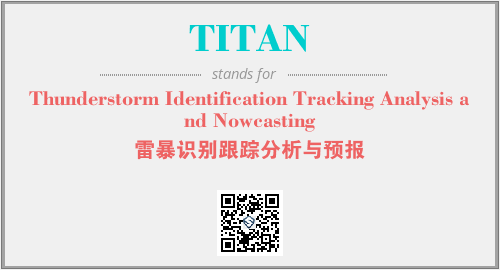 上述内容是“Thunderstorm Identification Tracking Analysis and Nowcasting”作为“TITAN”的缩写,解释为“雷暴识别跟踪分析与预报”时的信息,以及英文缩略词TITAN所代表的英文单词,其对应的中文拼音、详细解释以及在英文中的流行度和相关分类、应用领域及应用示例等。