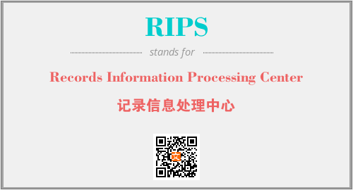 上述内容是“Records Information Processing Center”作为“RIPS”的缩写,解释为“记录信息处理中心”时的信息,以及英文缩略词RIPS所代表的英文单词,其对应的中文拼音、详细解释以及在英文中的流行度和相关分类、应用领域及应用示例等。
