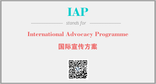 上述内容是“International Advocacy Programme”作为“IAP”的缩写,解释为“国际宣传方案”时的信息,以及英文缩略词IAP所代表的英文单词,其对应的中文拼音、详细解释以及在英文中的流行度和相关分类、应用领域及应用示例等。