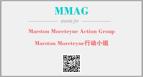 上述内容是“Marston Moreteyne Action Group”作为“MMAG”的缩写,解释为“Marston Moreteyne行动小组”时的信息,以及英文缩略词MMAG所代表的英文单词,其对应的中文拼音、详细解释以及在英文中的流行度和相关分类、应用领域及应用示例等。