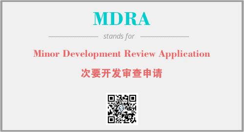 上述内容是“Minor Development Review Application”作为“MDRA”的缩写,解释为“次要开发审查申请”时的信息,以及英文缩略词MDRA所代表的英文单词,其对应的中文拼音、详细解释以及在英文中的流行度和相关分类、应用领域及应用示例等。