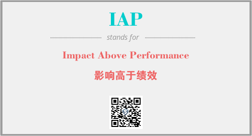 上述内容是“Impact Above Performance”作为“IAP”的缩写,解释为“影响高于绩效”时的信息,以及英文缩略词IAP所代表的英文单词,其对应的中文拼音、详细解释以及在英文中的流行度和相关分类、应用领域及应用示例等。