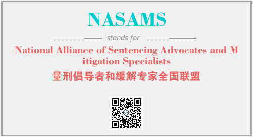 上述内容是“National Alliance of Sentencing Advocates and Mitigation Specialists”作为“NASAMS”的缩写,解释为“量刑倡导者和缓解专家全国联盟”时的信息,以及英文缩略词NASAMS所代表的英文单词,其对应的中文拼音、详细解释以及在英文中的流行度和相关分类、应用领域及应用示例等。