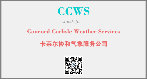 上述内容是“Concord Carlisle Weather Services”作为“CCWS”的缩写,解释为“卡莱尔协和气象服务公司”时的信息,以及英文缩略词CCWS所代表的英文单词,其对应的中文拼音、详细解释以及在英文中的流行度和相关分类、应用领域及应用示例等。