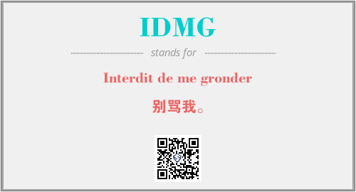 上述内容是“Interdit de me gronder”作为“IDMG”的缩写,解释为“别骂我。”时的信息,以及英文缩略词IDMG所代表的英文单词,其对应的中文拼音、详细解释以及在英文中的流行度和相关分类、应用领域及应用示例等。