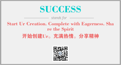以上为Start Ur Creation. Complete with Eagerness. Share the Spirit英文缩略词SUCCESS的中文解释,以及该英文缩写在英语的流行度、分类和应用领域方面的信息。