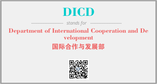 上述内容是“Department of International Cooperation and Development”作为“DICD”的缩写,解释为“国际合作与发展部”时的信息,以及英文缩略词DICD所代表的英文单词,其对应的中文拼音、详细解释以及在英文中的流行度和相关分类、应用领域及应用示例等。