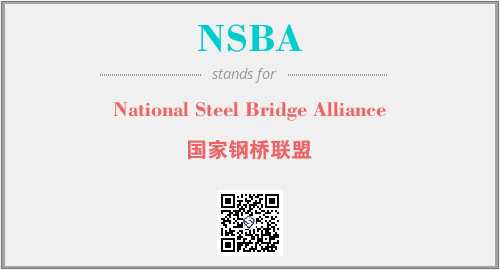 上述内容是“National Steel Bridge Alliance”作为“NSBA”的缩写,解释为“国家钢桥联盟”时的信息,以及英文缩略词NSBA所代表的英文单词,其对应的中文拼音、详细解释以及在英文中的流行度和相关分类、应用领域及应用示例等。