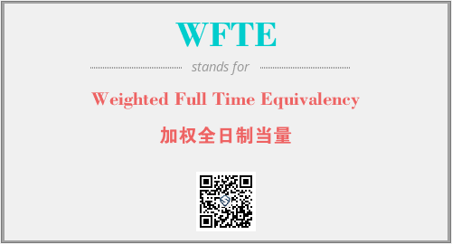 上述内容是“Weighted Full Time Equivalency”作为“WFTE”的缩写,解释为“加权全日制当量”时的信息,以及英文缩略词WFTE所代表的英文单词,其对应的中文拼音、详细解释以及在英文中的流行度和相关分类、应用领域及应用示例等。