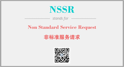 英文缩略词“NSSR”经常作为“Non Standard Service Request”的英文缩写来使用,中文表示:“非标准服务请求”。本文将详细介绍英文缩写词NSSR所代表英文单词,其对应的中文拼音、详细解释以及在英语中的流行度。此外,还有关于缩略词NSSR的分类、应用领域及相关应用示例等。