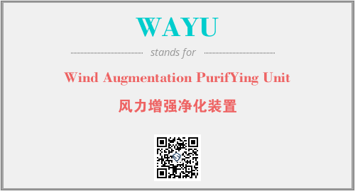 上述内容是“Wind Augmentation PurifYing Unit”作为“WAYU”的缩写,解释为“风力增强净化装置”时的信息,以及英文缩略词WAYU所代表的英文单词,其对应的中文拼音、详细解释以及在英文中的流行度和相关分类、应用领域及应用示例等。