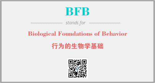 上述内容是“Biological Foundations of Behavior”作为“BFB”的缩写,解释为“行为的生物学基础”时的信息,以及英文缩略词BFB所代表的英文单词,其对应的中文拼音、详细解释以及在英文中的流行度和相关分类、应用领域及应用示例等。