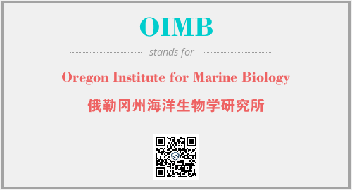 上述内容是“Oregon Institute for Marine Biology”作为“OIMB”的缩写,解释为“俄勒冈州海洋生物学研究所”时的信息,以及英文缩略词OIMB所代表的英文单词,其对应的中文拼音、详细解释以及在英文中的流行度和相关分类、应用领域及应用示例等。