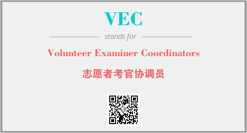 英文缩略词“VEC”经常作为“Volunteer Examiner Coordinators”的英文缩写来使用,中文表示:“志愿者考官协调员”。本文将详细介绍英文缩写词VEC所代表英文单词,其对应的中文拼音、详细解释以及在英语中的流行度。此外,还有关于缩略词VEC的分类、应用领域及相关应用示例等。