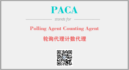 上述内容是“Polling Agent Counting Agent”作为“PACA”的缩写,解释为“轮询代理计数代理”时的信息,以及英文缩略词PACA所代表的英文单词,其对应的中文拼音、详细解释以及在英文中的流行度和相关分类、应用领域及应用示例等。
