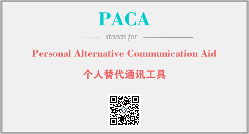 英文缩略词“PACA”经常作为“Personal Alternative Communication Aid”的英文缩写来使用,中文表示:“个人替代通讯工具”。本文将详细介绍英文缩写词PACA所代表英文单词,其对应的中文拼音、详细解释以及在英语中的流行度。此外,还有关于缩略词PACA的分类、应用领域及相关应用示例等。