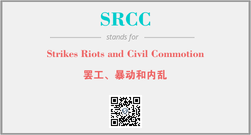 英文缩略词“SRCC”经常作为“Strikes Riots and Civil Commotion”的英文缩写来使用,中文表示:“罢工、暴动和内乱”。本文将详细介绍英文缩写词SRCC所代表英文单词,其对应的中文拼音、详细解释以及在英语中的流行度。此外,还有关于缩略词SRCC的分类、应用领域及相关应用示例等。
