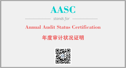 英文缩略词“AASC”经常作为“Annual Audit Status Certification”的英文缩写来使用,中文表示:“年度审计状况证明”。本文将详细介绍英文缩写词AASC所代表英文单词,其对应的中文拼音、详细解释以及在英语中的流行度。此外,还有关于缩略词AASC的分类、应用领域及相关应用示例等。