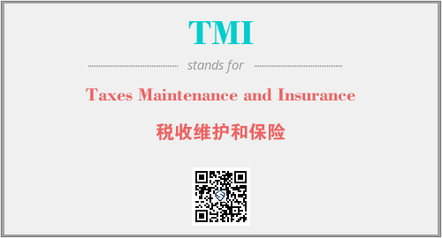 英文缩略词“TMI”经常作为“Taxes Maintenance and Insurance”的英文缩写来使用,中文表示:“税收维护和保险”。本文将详细介绍英文缩写词TMI所代表英文单词,其对应的中文拼音、详细解释以及在英语中的流行度。此外,还有关于缩略词TMI的分类、应用领域及相关应用示例等。