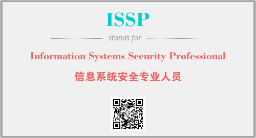 以上为Information Systems Security Professional英文缩略词ISSP的中文解释,以及该英文缩写在英语的流行度、分类和应用领域方面的信息。