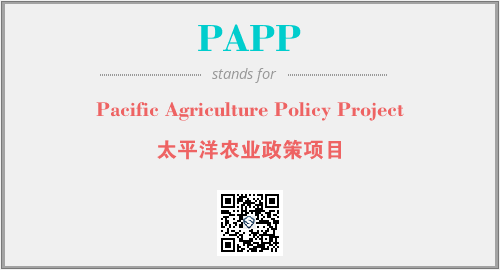上述内容是“Pacific Agriculture Policy Project”作为“PAPP”的缩写,解释为“太平洋农业政策项目”时的信息,以及英文缩略词PAPP所代表的英文单词,其对应的中文拼音、详细解释以及在英文中的流行度和相关分类、应用领域及应用示例等。