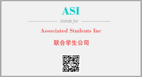 英文缩略词“ASI”经常作为“Associated Students Inc”的英文缩写来使用,中文表示:“联合学生公司”。本文将详细介绍英文缩写词ASI所代表英文单词,其对应的中文拼音、详细解释以及在英语中的流行度。此外,还有关于缩略词ASI的分类、应用领域及相关应用示例等。