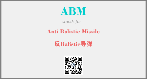 英文缩略词“ABM”经常作为“Anti Balistic Missile”的英文缩写来使用,中文表示:“反Balistic导弹”。本文将详细介绍英文缩写词ABM所代表英文单词,其对应的中文拼音、详细解释以及在英语中的流行度。此外,还有关于缩略词ABM的分类、应用领域及相关应用示例等。