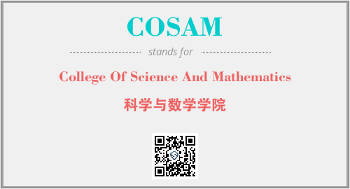 英文缩略词“COSAM”经常作为“College Of Science And Mathematics”的英文缩写来使用,中文表示:“科学与数学学院”。本文将详细介绍英文缩写词COSAM所代表英文单词,其对应的中文拼音、详细解释以及在英语中的流行度。此外,还有关于缩略词COSAM的分类、应用领域及相关应用示例等。
