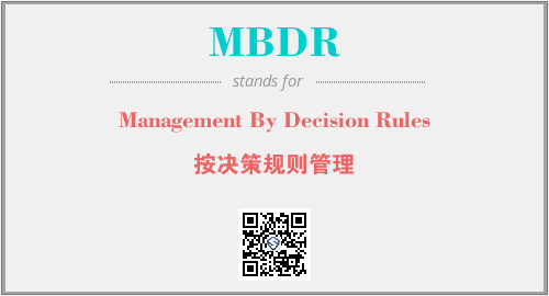 上述内容是“Management By Decision Rules”作为“MBDR”的缩写,解释为“按决策规则管理”时的信息,以及英文缩略词MBDR所代表的英文单词,其对应的中文拼音、详细解释以及在英文中的流行度和相关分类、应用领域及应用示例等。
