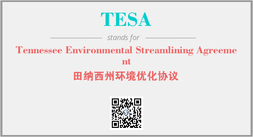 上述内容是“Tennessee Environmental Streamlining Agreement”作为“TESA”的缩写,解释为“田纳西州环境优化协议”时的信息,以及英文缩略词TESA所代表的英文单词,其对应的中文拼音、详细解释以及在英文中的流行度和相关分类、应用领域及应用示例等。