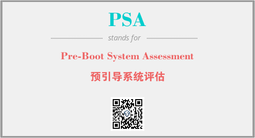 英文缩略词“PSA”经常作为“Pre-Boot System Assessment”的英文缩写来使用,中文表示:“预引导系统评估”。本文将详细介绍英文缩写词PSA所代表英文单词,其对应的中文拼音、详细解释以及在英语中的流行度。此外,还有关于缩略词PSA的分类、应用领域及相关应用示例等。