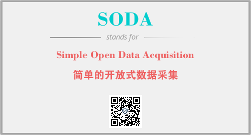 上述内容是“Simple Open Data Acquisition”作为“SODA”的缩写,解释为“简单的开放式数据采集”时的信息,以及英文缩略词SODA所代表的英文单词,其对应的中文拼音、详细解释以及在英文中的流行度和相关分类、应用领域及应用示例等。