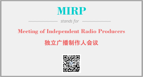 以上为Meeting of Independent Radio Producers英文缩略词MIRP的中文解释,以及该英文缩写在英语的流行度、分类和应用领域方面的信息。