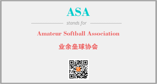 英文缩略词“ASA”经常作为“Amateur Softball Association”的英文缩写来使用,中文表示:“业余垒球协会”。本文将详细介绍英文缩写词ASA所代表英文单词,其对应的中文拼音、详细解释以及在英语中的流行度。此外,还有关于缩略词ASA的分类、应用领域及相关应用示例等。