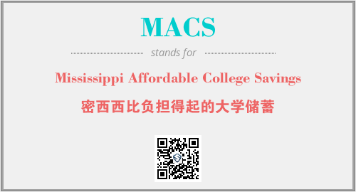 上述内容是“Mississippi Affordable College Savings”作为“MACS”的缩写,解释为“密西西比负担得起的大学储蓄”时的信息,以及英文缩略词MACS所代表的英文单词,其对应的中文拼音、详细解释以及在英文中的流行度和相关分类、应用领域及应用示例等。
