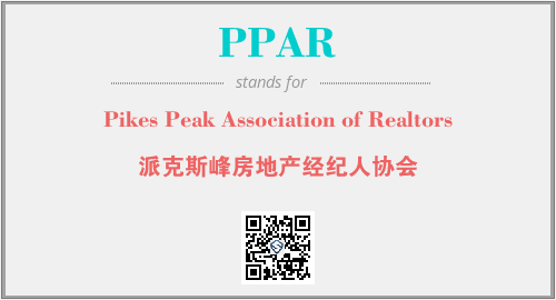 上述内容是“Pikes Peak Association of Realtors”作为“PPAR”的缩写,解释为“派克斯峰房地产经纪人协会”时的信息,以及英文缩略词PPAR所代表的英文单词,其对应的中文拼音、详细解释以及在英文中的流行度和相关分类、应用领域及应用示例等。