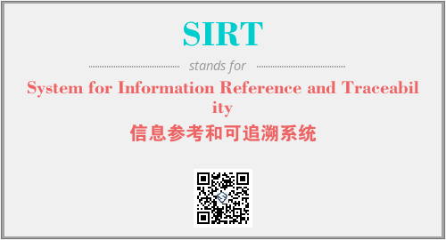 上述内容是“System for Information Reference and Traceability”作为“SIRT”的缩写,解释为“信息参考和可追溯系统”时的信息,以及英文缩略词SIRT所代表的英文单词,其对应的中文拼音、详细解释以及在英文中的流行度和相关分类、应用领域及应用示例等。