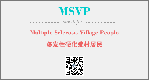 英文缩略词“MSVP”经常作为“Multiple Sclerosis Village People”的英文缩写来使用,中文表示:“多发性硬化症村居民”。本文将详细介绍英文缩写词MSVP所代表英文单词,其对应的中文拼音、详细解释以及在英语中的流行度。此外,还有关于缩略词MSVP的分类、应用领域及相关应用示例等。