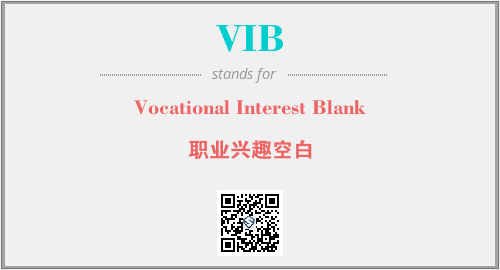 英文缩略词“VIB”经常作为“Vocational Interest Blank”的英文缩写来使用,中文表示:“职业兴趣空白”。本文将详细介绍英文缩写词VIB所代表英文单词,其对应的中文拼音、详细解释以及在英语中的流行度。此外,还有关于缩略词VIB的分类、应用领域及相关应用示例等。