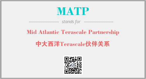 上述内容是“Mid Atlantic Terascale Partnership”作为“MATP”的缩写,解释为“中大西洋Terascale伙伴关系”时的信息,以及英文缩略词MATP所代表的英文单词,其对应的中文拼音、详细解释以及在英文中的流行度和相关分类、应用领域及应用示例等。