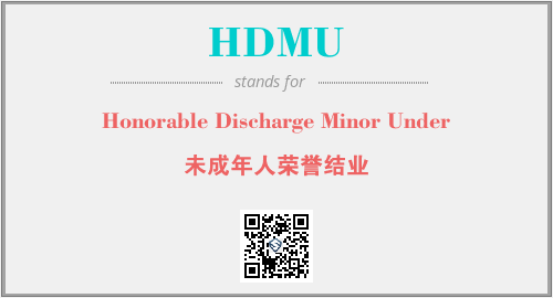英文缩略词“HDMU”经常作为“Honorable Discharge Minor Under”的英文缩写来使用,中文表示:“未成年人荣誉结业”。本文将详细介绍英文缩写词HDMU所代表英文单词,其对应的中文拼音、详细解释以及在英语中的流行度。此外,还有关于缩略词HDMU的分类、应用领域及相关应用示例等。