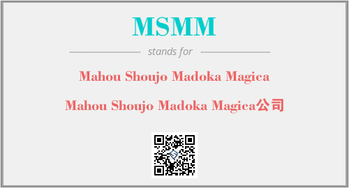 英文缩略词“MSMM”经常作为“Mahou Shoujo Madoka Magica”的英文缩写来使用,中文表示:“Mahou Shoujo Madoka Magica公司”。本文将详细介绍英文缩写词MSMM所代表英文单词,其对应的中文拼音、详细解释以及在英语中的流行度。此外,还有关于缩略词MSMM的分类、应用领域及相关应用示例等。