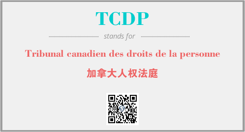 英文缩略词“TCDP”经常作为“Tribunal canadien des droits de la personne”的英文缩写来使用,中文表示:“加拿大人权法庭”。本文将详细介绍英文缩写词TCDP所代表英文单词,其对应的中文拼音、详细解释以及在英语中的流行度。此外,还有关于缩略词TCDP的分类、应用领域及相关应用示例等。
