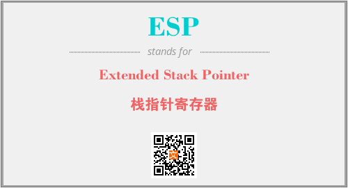 英文缩略词“ESP”经常作为“Extended Stack Pointer”的英文缩写来使用,中文表示:“栈指针寄存器”。本文将详细介绍英文缩写词ESP所代表英文单词,其对应的中文拼音、详细解释以及在英语中的流行度。此外,还有关于缩略词ESP的分类、应用领域及相关应用示例等。