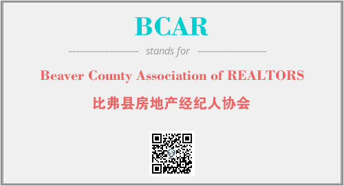 英文缩略词“BCAR”经常作为“Beaver County Association of REALTORS”的英文缩写来使用,中文表示:“比弗县房地产经纪人协会”。本文将详细介绍英文缩写词BCAR所代表英文单词,其对应的中文拼音、详细解释以及在英语中的流行度。此外,还有关于缩略词BCAR的分类、应用领域及相关应用示例等。